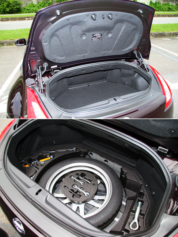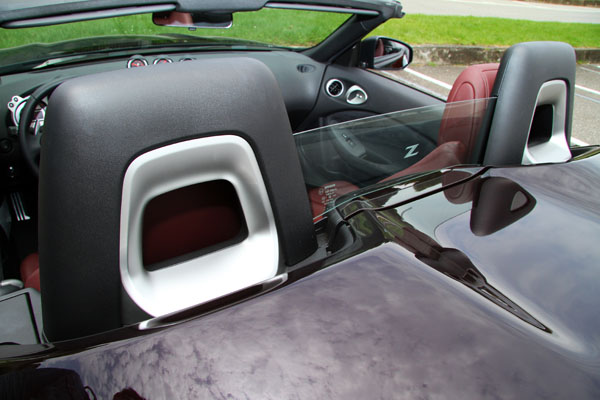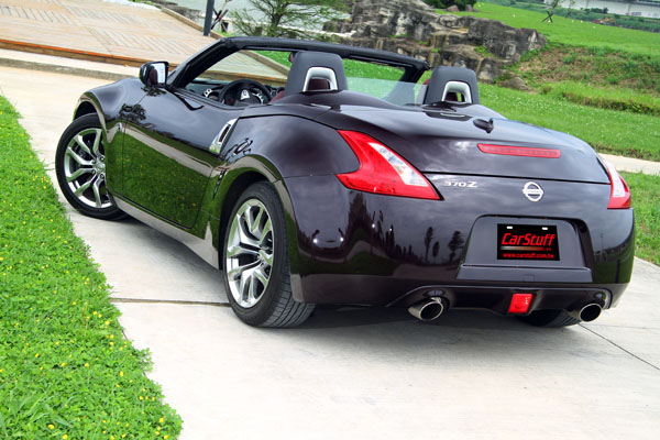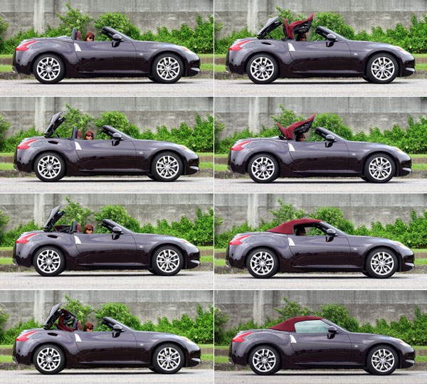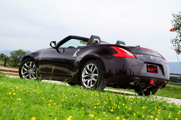 累積了350Z小改款前後車型,與370Z Coupe車型的試駕經驗,此次再次與370 Roadster遭遇,熟悉感受再度湧上心頭;由於軟頂敞篷配置,主角370 Roadster車尾線條與Coupe車型有著最大差異處,一改Coupe車型斜背式的經典線條,由於軟頂較硬頂敞篷的較小機械裝置空間,因此闔上軟頂之後,從車頂的線條往下延伸後,與平直的尾廂連接,形成一U型曲線,要非上空的吸引力,個人還是認為Coupe的車型經典。
