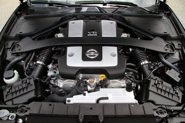 在充滿肌肉線條的引擎蓋下,370Z Roadster搭載著為VQ37VHR此3696c.c. V6引擎,此引擎的豐功偉業,其實已無需再多所著墨;插入鑰匙,按下啟動鍵後,轟然一聲的飽滿渾厚排氣聲浪立刻告知駕駛自身過人實力,可惜的是此次試駕由於車牌原因,僅能於河濱公園內作有限的動態體驗,對於這高達328hp/7000rpm最大馬力與37.0kgm/5200rpm峰值扭力的輸出實力,不能選擇一條直路與彎道兼具的測試道路一探虛實,實在可惜了點。