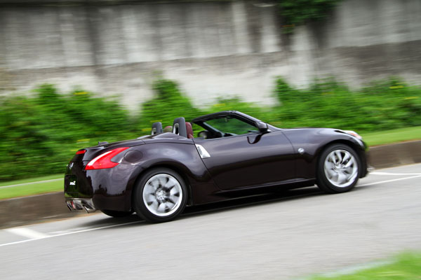 直線上的370Z Roadster,的確是個相當令人醉心的加速機器,制動力道也足以應付此小怪獸,不過當面對著彎道之際,370Z Roadster動力與底盤間的不協調似乎開始浮現。所謂的不協調,乃是懸吊反應造成的觀感,除了於彎道中給予車身的支撐性略顯不足、而導致令駕駛信心打折的車身側傾外,快速變換方向之際,懸吊壓縮與伸張的跟進速度稍慢,且在後輪動力不斷的推送中,車身的穩定性有待提升,更讓駕駛於右腳的控制中略為退縮;雖然車身剛性在敞篷的配置中依舊有著令人滿意的演出,但底盤的懸吊調校,如果可再稍微硬派,相信彎道中的370Z Roadster,會是個更為全面的殺彎強將。
