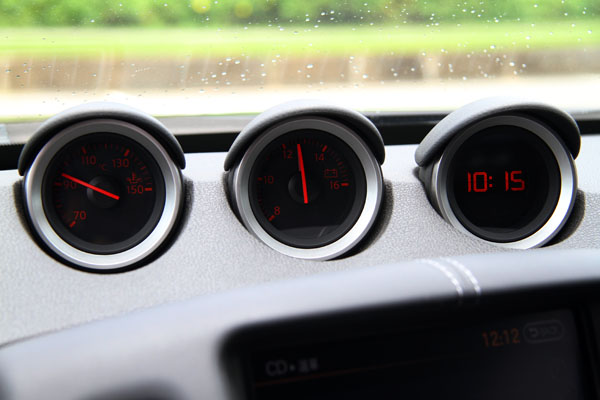 控台上方的三環儀表,刻意營造的跑車氛圍。