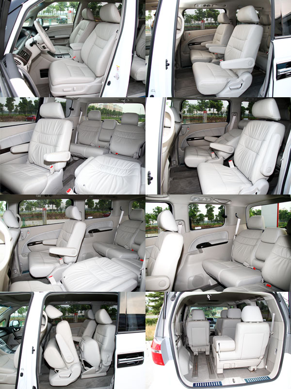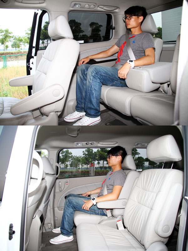 軸距達2900mm的Elysion艾力绅,提供寬闊地七人座乘坐空間,座椅設置採2-2-3方式排列,並可藉由滑軌做前後空間調配,厚實地類沙發座椅,舒適性不在話下,第二排座椅可全數放倒與第三排座椅連結為車床,成為休憩空間,不過因產品特性強調人員乘載,而非載物,因此座椅未具備向下收納至底板內的功能,僅能藉由前後位移與收折椅墊方式騰出後方空間,但原則上已足敷多數運載需求。