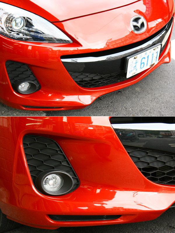 車燈追加新的功能,是本次小改款車型的重點之一;與本次試駕2.5 S車型相同的氙氣頭燈,在2.0頂級款四門與五門車型、以及2.5 S等三款車型上均追加頭燈自動啟閉功能,而除了自動啟閉功能外,2.5 S車型更有著Mazda3車系獨有的AFS頭燈主動轉向功能。