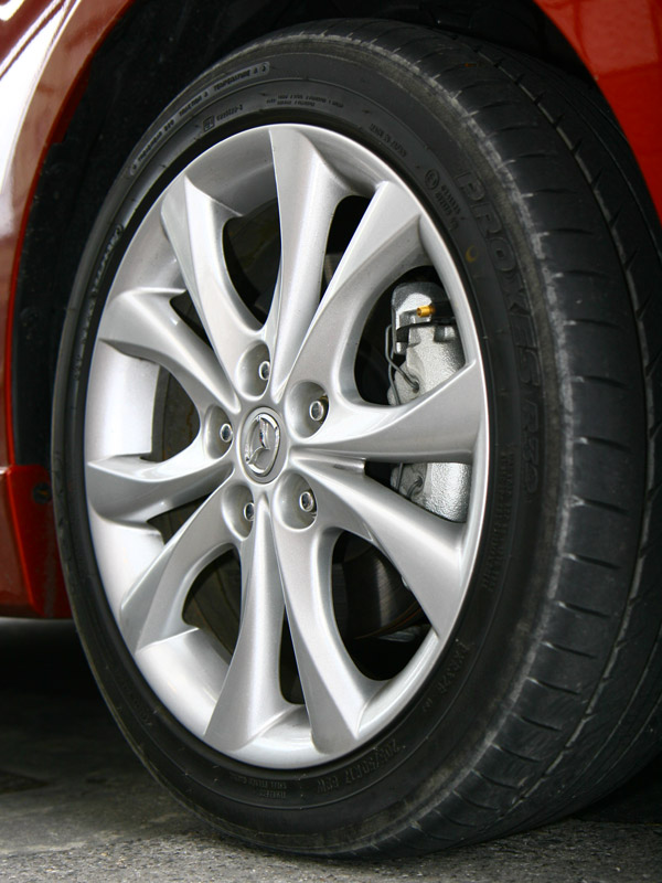 17吋鋁圈為Mazda3 2.5 S專屬,並搭配TOYO 205 / 50 R17的輪胎。