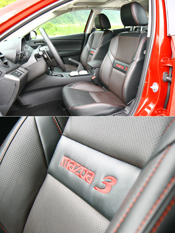 Mazda3 2.5 S全車座椅均採紅黑相間的色彩搭配,前座背靠更繡有紅色Mazda3字樣,以突顯其運動風格。