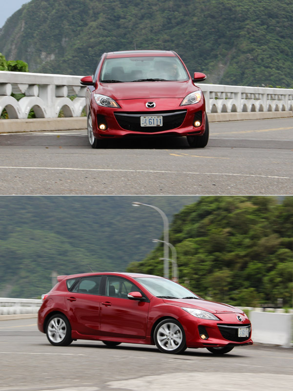 前麥花臣、後多連桿的懸吊架構,搭配線性的煞車回饋與油門反應、以及準確的轉向手感,Mazda3 2.5 S雖然是前驅車,沿路上卻鮮少感受到轉向不足的窘境,逢彎總能快速、流暢地劃過;彎道中,Mazda3 2.5 S的懸吊反應適中,側傾抑制相當出色,但經過路面接縫或坑洞,懸吊回彈的震動卻又令人稍感不適,但懸吊回復速度極快,吸震表現堪稱良好,懸吊幾何設定顯然稍微偏硬,但這對攻克彎道來說,似乎是相對應、卻不死硬的搭配。