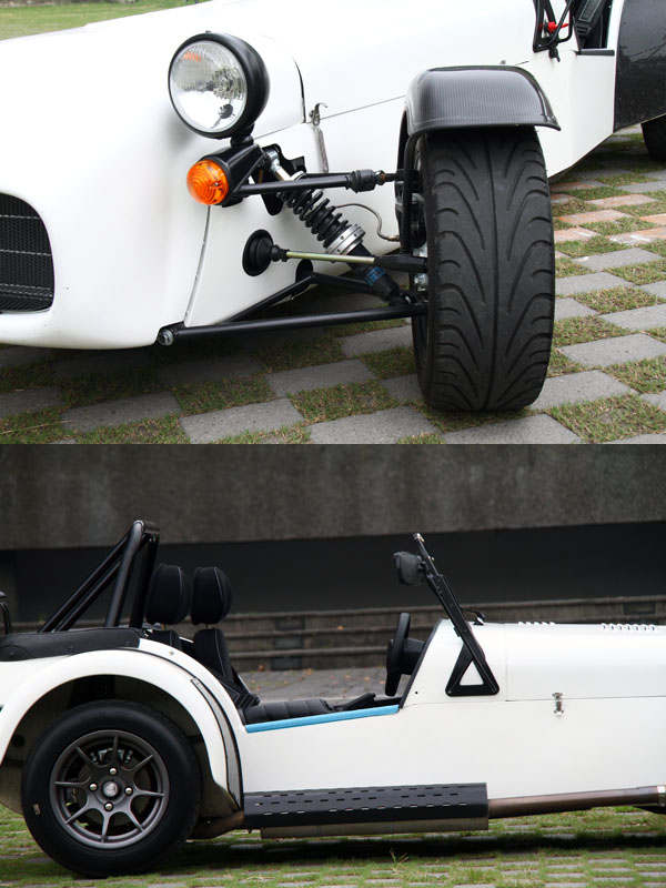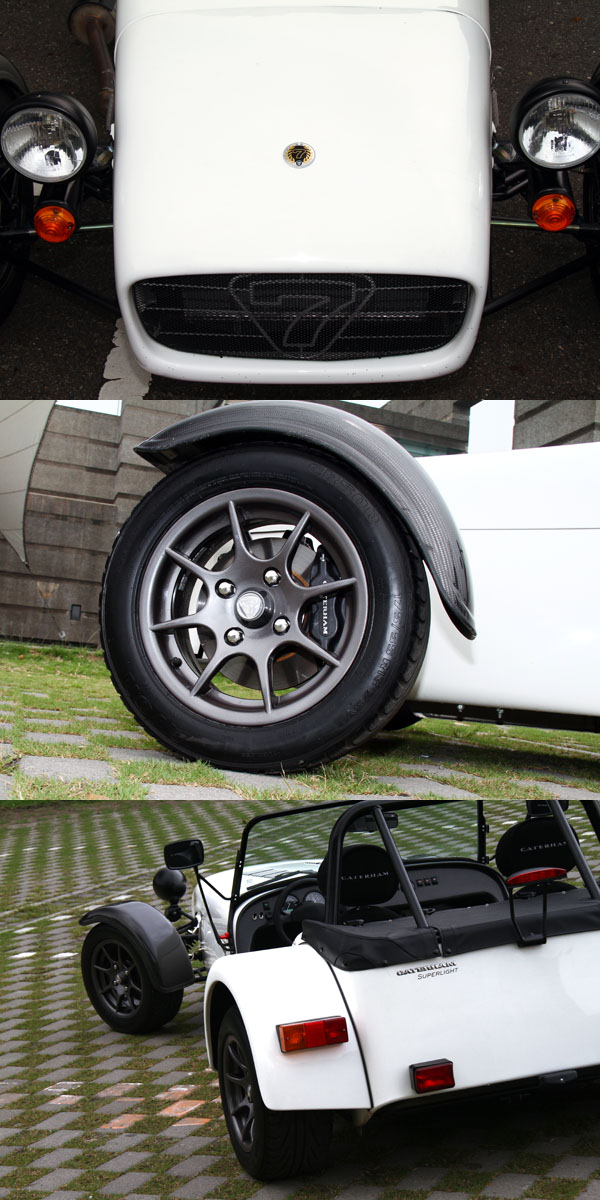 外露式前輪、頭燈、單體化的車體結構,都是源自Lotus 7的傳統設計。