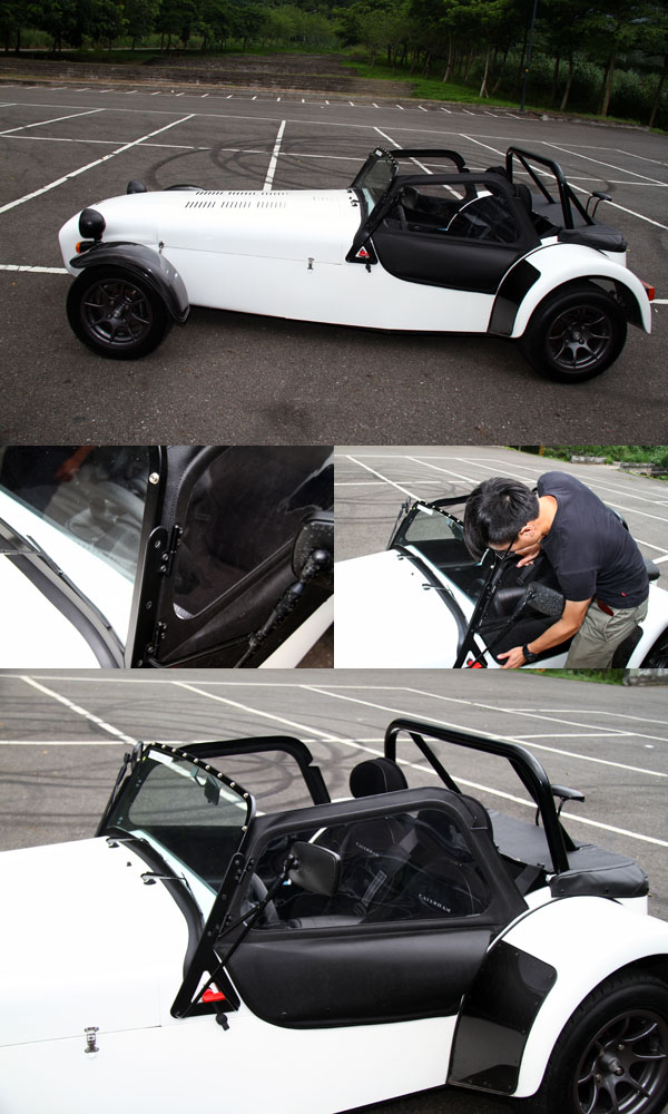 要進入Roadsport 120 SV Superlight,必須跨過側門檻〈車門採可拆卸設計,多為停車防雨用〉,然後選擇採椅墊,或用很憋腳的姿勢採在底板上讓身子跌坐進去,是的,這樣的上車方式,真的跟進澡盆很像,只是進入前你不用試過水溫再上,而且今天試駕的車輛採白色塗裝,讓我更覺得自己像是進到澡盆開車,好不容易坐定後,調整好選配地四點式安全帶,這時開始有一點像要駕著一輛大卡丁車上場的感覺了,整輛車內的陳設比起Lotus Elise還要更原始,包括頭燈,方向燈等開關全數設計在控台上,加上五只儀錶,簡單到極致,難得上了車不用東摸西摸,熟悉各種介面,讓人可以完完全全專注在駕馭上。