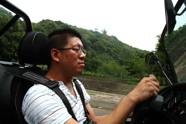 啟動引擎,排氣聲浪並不特別渾厚或雄壯,踩下離合器,操作短捷的排檔桿進入一檔,駕駛介面比想像的和善許多,離合器接點很容易掌握,輕輕鬆鬆就可以將它開上路,唯一比較費力的是必須用那小巧地方向盤,轉動無動力輔助轉向系統,在低速行駛時與需要原地轉向時會比較辛苦些,但是好處是轉向感超明確,又是個為了純粹操駕的設計;不過在窄小的車室中,需要多使力轉動方向盤時,雙肘必須拱起避開中央鞍座與車門檻,手部姿勢會有點像台客騎機車,而且兩個座位橫向距離很近,排檔時很容易就會肘擊到副駕駛,就算選了寬體車身也是如此,看來這真是一輛適合獨樂樂的車款。