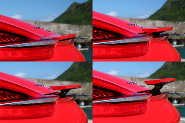 全新擾流尾翼於車速達到120km/h時會自動升起,提供更好的車尾下壓力,駕駛也可由車內的控制鈕操作起降功能。