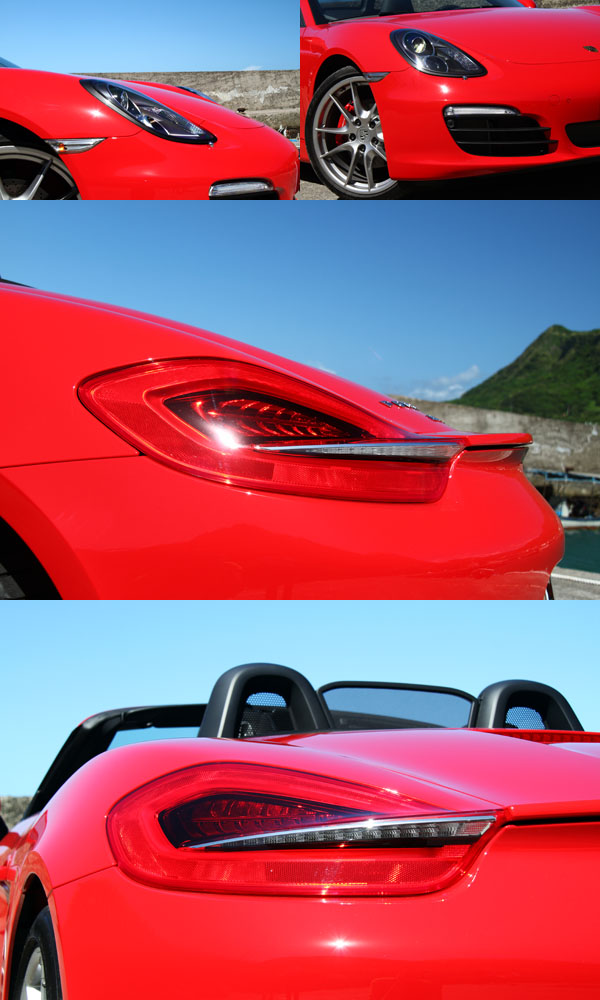 全新Boxster乍看之下,好像沒有什麼改變,但是就像全新911,隨著相處的時間增加,就會讓人有越看越順眼的感覺,成熟經典的設計,時常是以簡單的線條所組成,而且一旦創造出屬於自己的專屬造型後,就不需要做太多的改變,而本次Boxster改款,仍延續著類輕舟的基本形體,在細節上做修飾,將頭尾燈、側邊進氣口等部分拿捏出更適當的比例,這也是我說它越看越順眼的原因,其中最容易辨認的部分,是那將車尾上揚鴨尾與兩側尾燈組連成一氣,是以往跑車鮮有的設計,同時還可以兼具空氣動力效益。