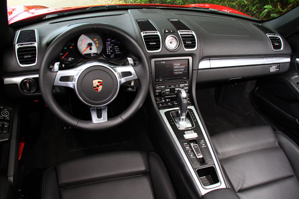 全新Boxster亦採用了抬升式中央鞍座造型以駕駛為設計中心,縮短了排檔桿到方向盤的距離,強化操駕機能,但對其他介面操作則略有影響。