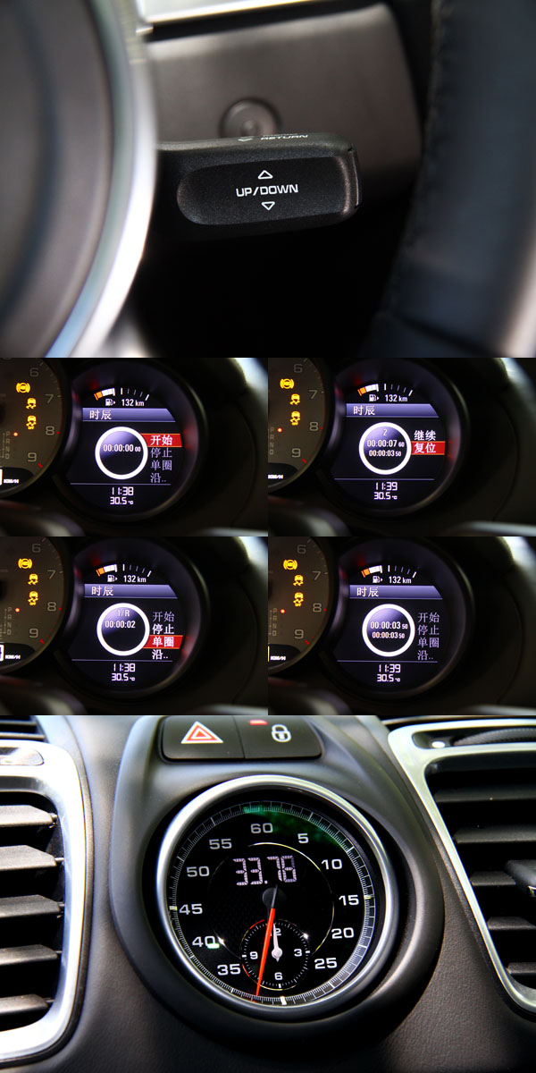 選配的跑車計時套件,內含動態變速箱支撐系統、性能顯示介面、一只數位與類比雙顯計時碼錶,以及「SPORT PLUS」運動升級按鈕,駕駛者可自行控制計時,紀錄單圈成績。