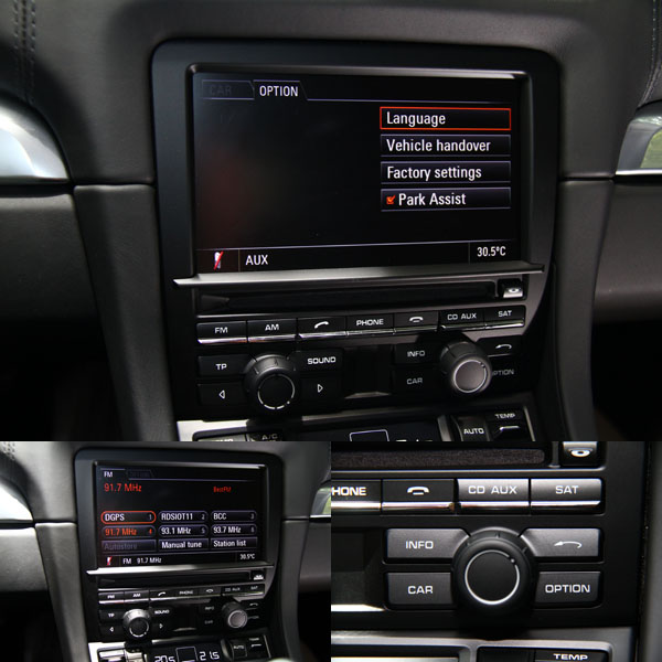進入座艙,熟悉的氛圍,有著與911相近的陳設,最明顯的改變則是將中央鞍座前緣高度加高,提高操作便利性,而雙區恆溫空調、多功能資訊系統等配備一應俱全,實際操作上,各項介面略為繁複的按鍵設計,並不容易在短時間內上手,且包括空調與資訊系統介面皆於排檔桿前方,操作時會受到排檔桿些許影響。