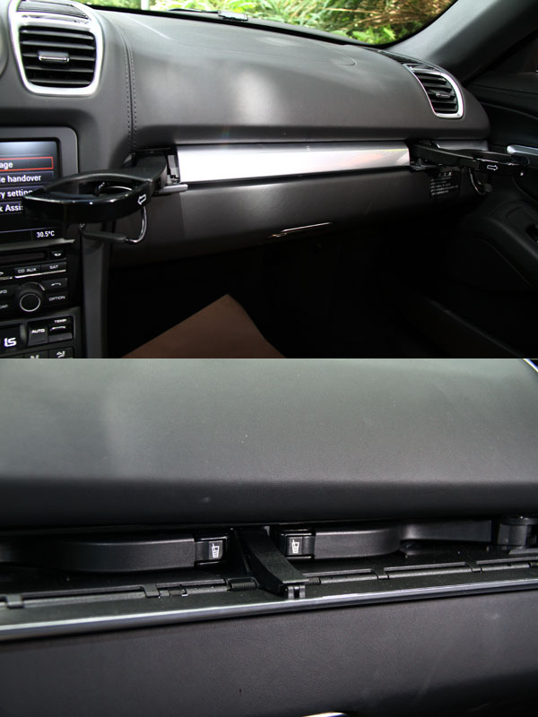 設置於手套箱上緣的隱藏式置杯架已經是Porsche跑車的特色之一。