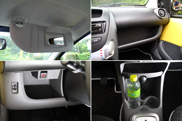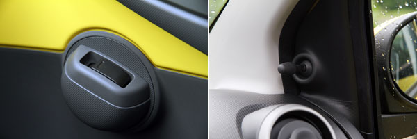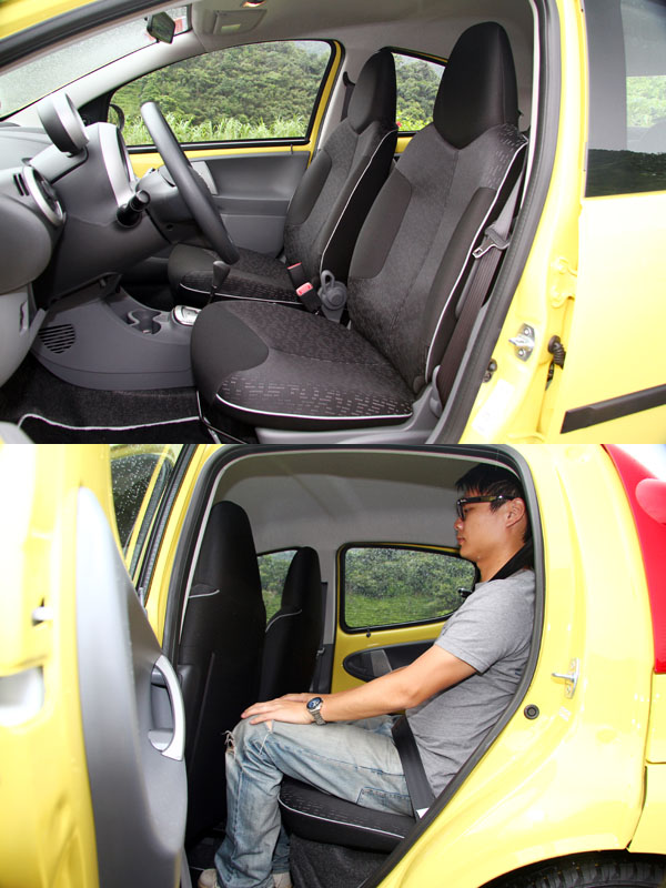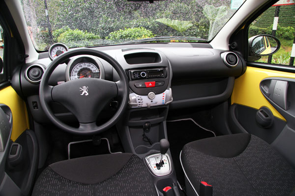而車內的設計感部分,107也明顯跳脫了Peugeot家族中其他老大哥的風格,顯得活潑許多,也符合其年輕定位,不過配備上就還是以實用為主,左右後視鏡仍採手動調整,前兩扇車門具備電動窗設計,但是開關則是各自為政、一邊一組,一般在駕駛側皆有所有電動窗控制開關的設計,在107上則予以省略,所以若是駕駛者要開啟副駕駛側車窗,就必須伸過身子跨過副駕駛座操作,幸好距離還不算太遠,操作的便利性勉強可以接受,至於後兩扇門則僅配置以往於三門或休旅車最後一排車窗所採用的蝴蝶窗設計,僅能透過連桿向外推開些許,無法完全降下,有些特別,但是對於後座乘客來說,需要一點時間適應。