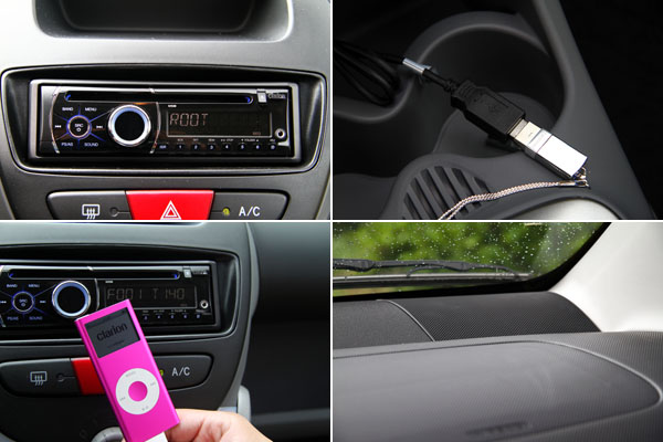原廠配置的音響系統特地選擇具有MP3讀取功能與USB連接埠,可外接USB隨身碟或iPod等多媒體系統,但較可惜的是僅於前檔下緣兩側配置兩支喇叭,聆聽效果略受到影響。
