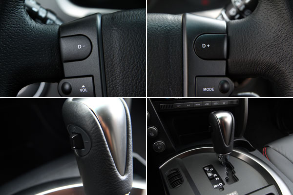 新配置的六速手自排變速系統,除了可由排檔桿旁的撥桿換檔外,也可以利用方向盤兩側的按鈕進行換檔。