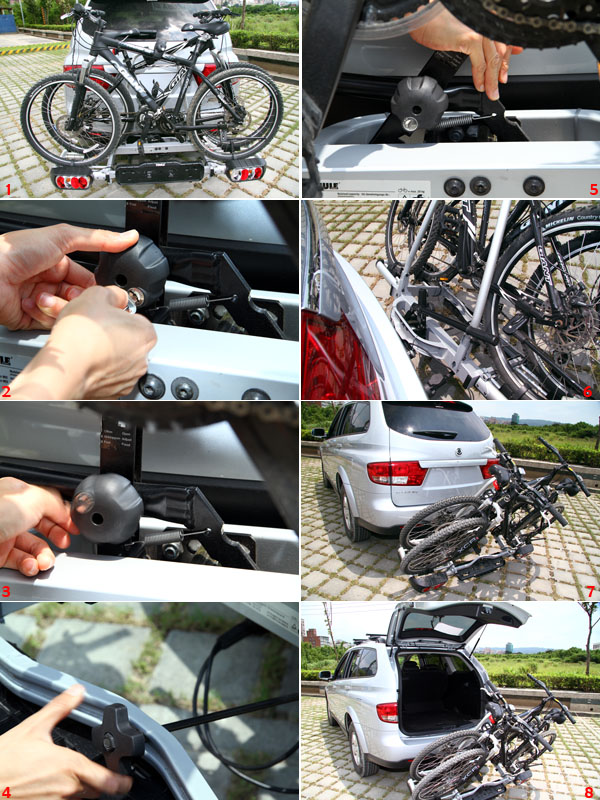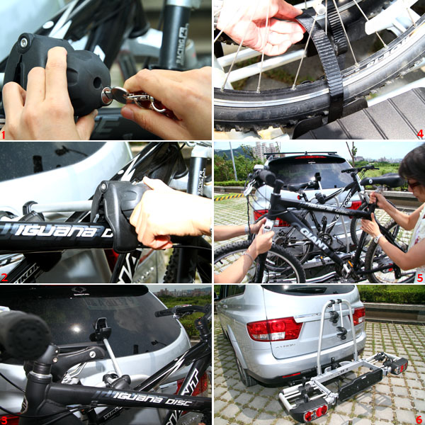 3.將自行車架置上拖車勾上