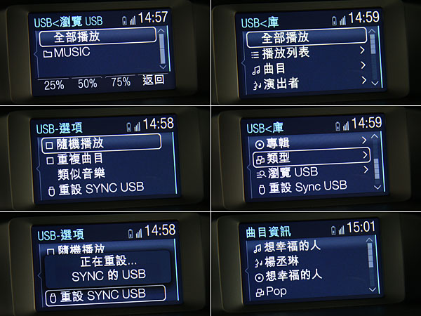 提及語音操作系統,這雖然從Fiesta便開始強打的科技,但當時以英文為主的操作環境,說真的引不起太多台灣消費者的注意;就好像iOS系統中的SIRI般,換至中文後,果然讓許多人三不五時就捧著手機問東問西;換上了中文的SYNC娛樂通訊整合系統,首先,可以利用藍牙介面連結你自身的行動電話,也可透過USB/AUX-in連結你的隨身音樂播放系統,整合後,你就可以放下你手邊的3C產品不管,利用設定好的語音操作流程,操作電話、音樂播放等指令,且中文辨識度不差,說真的,與中文SIRI比起來,這套系統的辨識度好像還聰明了點。