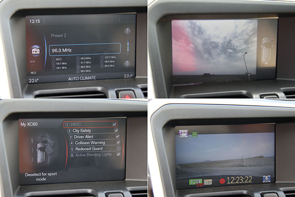 控台上方的VSI資訊控制介面與七吋整合式高解析彩色螢幕,為全車系標準配備,且國際富豪還同時加裝了行車記錄器於其中(如右下角圖示)。