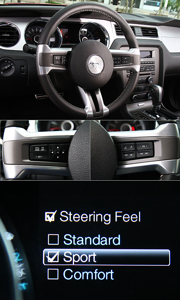 經典三幅式方向盤以真皮包覆,並具備功能操作鍵,且可選擇操作手感,於運動/標準/舒適間切換;實際操作,手感差異明顯,運動時較為重手且轉向較精準,而舒適模式則輕手許多,精準度也會相對打折。