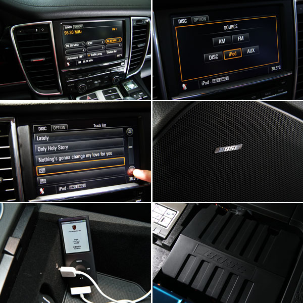 試駕的Panamera選配有多功能資訊系統,具備音響與衛星導航等功能,並且具備USB、Aux-in外接音源連接埠,同時選配了Bose揚聲系統。