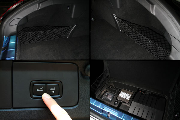 總代理提供的試駕車上選配有電動尾門,使得啟閉尾門更為方便,行李廂下層未配置傳統備胎,而是改以補胎組取代,右側則為Bose重低音音箱。