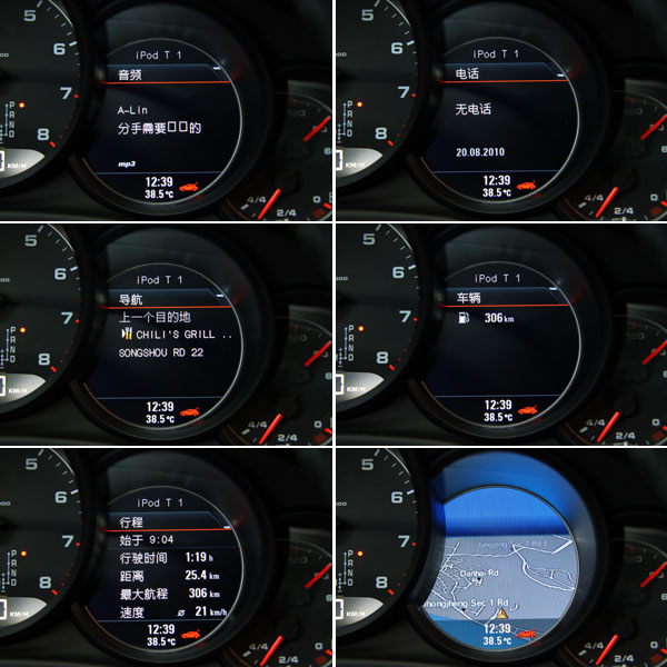 在傳統地五環儀錶板中,Porsche特地將右側第二只儀錶改為多功能液晶顯示幕,除了可顯示行車電腦、行車資訊與音響資訊外,還可切換為衛星導航功能,辨識上頗為方便,但目前原廠未提供中文圖資。