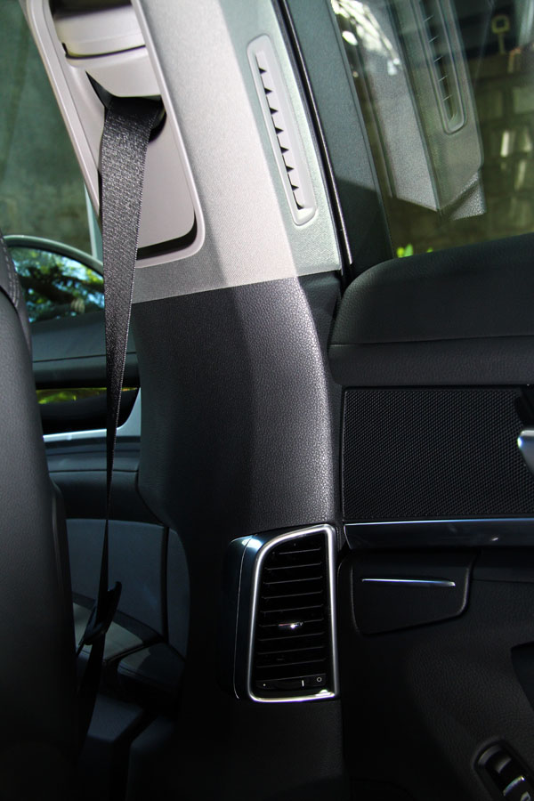 Panamera後座除了於鞍座前方設有空調出風口外,於兩側B柱同樣設有出風口,可增加冷房效果,此外,車窗側邊的出風口則具有除霧效果。