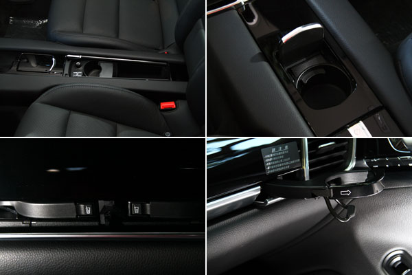 Panamera除了在鞍座上設有杯架外,前做杯架則是與911等車款相同,設至於手套箱上緣,使用時可將蓋板按開後,將杯架彈出使用。