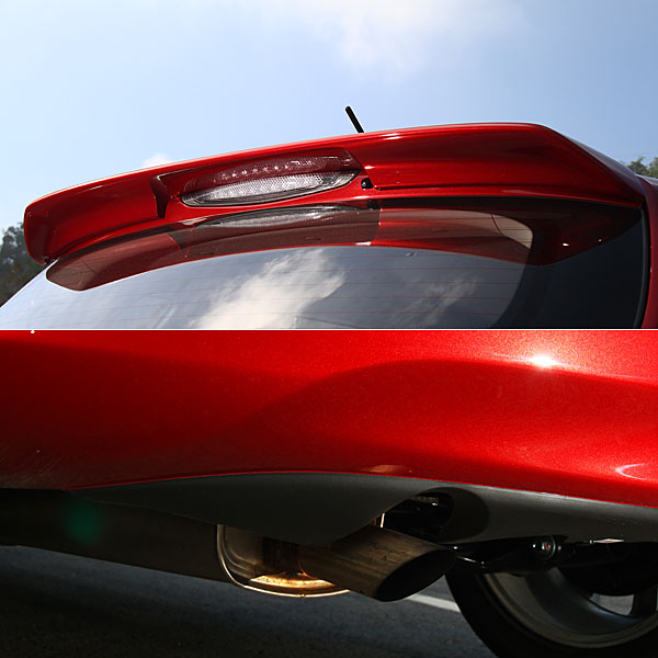 同樣的也具有整合煞車燈的尾翼,但下方的排氣尾管,也相同的相當陽春。