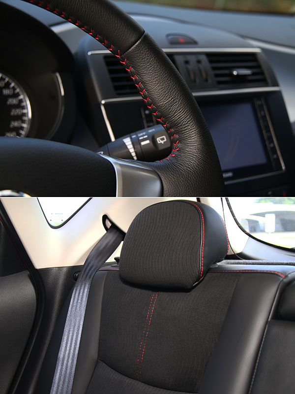 為了強化運動個性,方向盤與座椅採用了紅色縫線,座椅材質更以皮革與織布混搭。