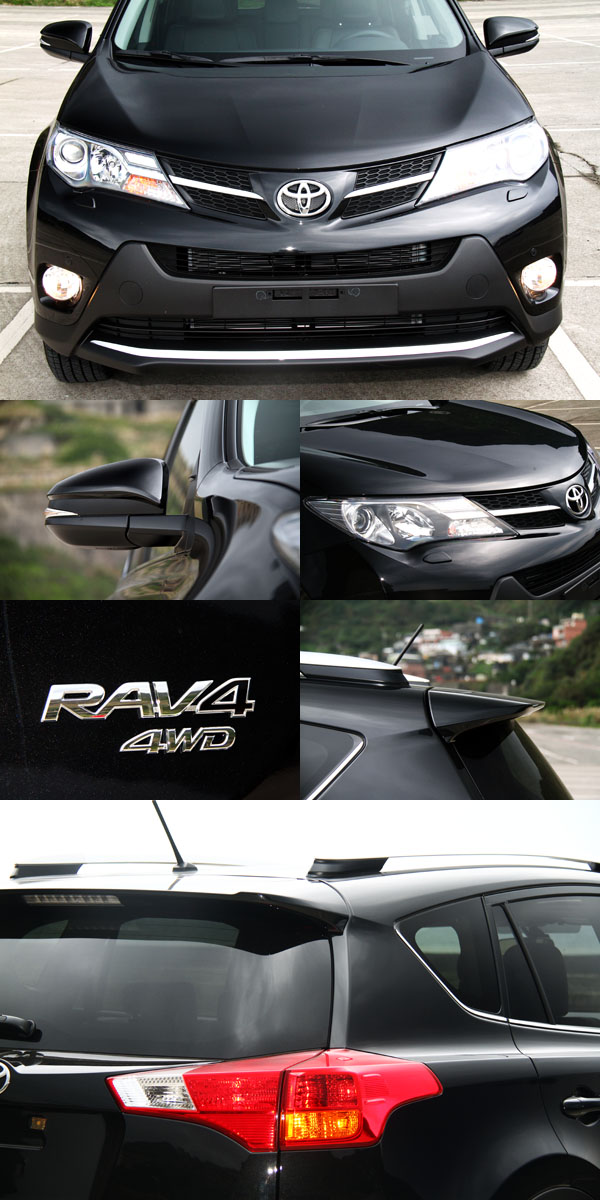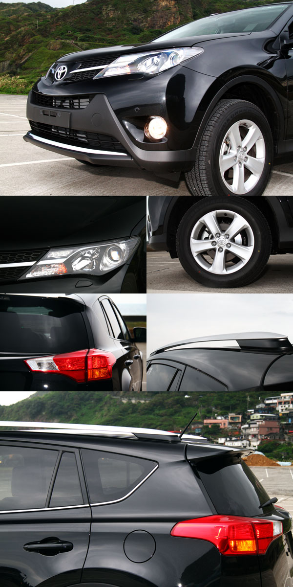 相較於前一代RAV4較為溫和的外觀設計,全新第四代RAV4在造型上有著大幅度的改變,線條由原本的圓潤變得銳利許多,高聳地前氣壩,搭配鋒利地頭燈與線條,有如破浪行駛、仰起的快艇船頭,氣勢十足,而過去Toyota於台灣販售的主力車款,外型上都較少於車側面上做文章,但在新的RAV4上,卻有著一道明顯的肩線延伸至車尾,於D柱下方形成階梯般斷差,搭配上不規則狀的大面積尾燈與輪弧曲線,讓它有著更明顯的特色;在此之前,Toyota針對前代RAV4車主進行調查,外觀是許多人認為需要改進的部分,而Toyota立即就在新車上做出反應,設計更能夠迎合時代潮流的外型,也讓RAV4更容易讓人留下深刻的印象。