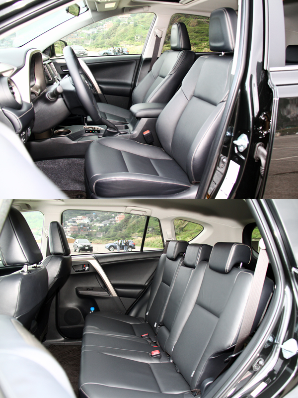 此外,全新RAV4在維持車身尺碼與前代車型相當下,重新安排座艙配置,以提供更優渥的車內空間,其中將前座座椅椅背薄型化,使後座乘客膝部空間增加 了41mm,同時,後座椅背傾斜角度亦可做微調,後座乘客可以依照需求做調整,以達到最好的乘坐舒適性。
