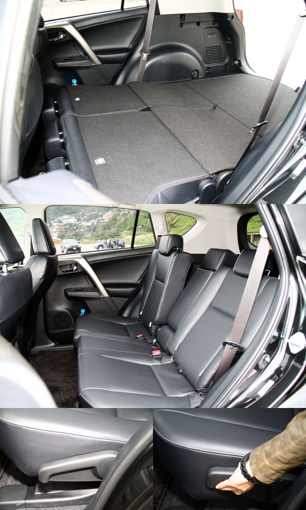 全新RAV4後座椅背仍舊具有傾斜角賭可調與全數放倒功能,但在上一代車型中,於行李廂兩側設置的One-Touch後座椅背翻倒機制則取消了,將拉柄移至座椅側面,便利性略為打折。