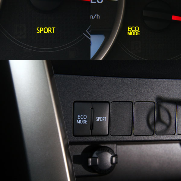在全新的RAV4 2.5 4WD上也導入了ECO MODE與Sport兩種行車模式,其中ECO MODE節能模式已經是當前呼應節能環保趨勢的必備選項,當開啟該模式後,系統會盡量將引擎轉速控制在2000rpm以內,油門訊號也會略為被封印起來,實際在行駛中,在固定油門深度下,一開啟ECO MODE模式會立即感受到動力馬上減弱,差異頗為明顯,若在起步前便開啟該模式,就會發現變速系統換檔時機也會略為提早,避免轉速過高,影響油耗,設於儀錶板左環內〝eco〞燈號也會常態亮起,車輛以最節能的方式行進,就算是全力踩油門,該模式同樣不會讓引擎全出力前進,加速感也會變得和緩,但是動能仍足夠應付多數路況使用,也就是在RAV4 2.5 4WD上的ECO MODE節能模式並不會完全將動能閹割起來,駕駛者不用太擔心為了節能而需要刻意地改變太多原本的駕駛習慣,控制油耗的部分可以放心交給電腦處理,相較於全油電複合動力車款,如此的輔助模式反而可以在不影響用路效率下,提升節能效果。