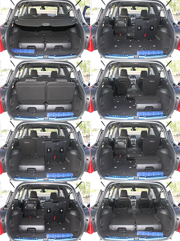 第二、第三排座椅可獨立的傾倒折疊,並全數拆除,讓後廂容積可於674至2149公升間彈性變換。