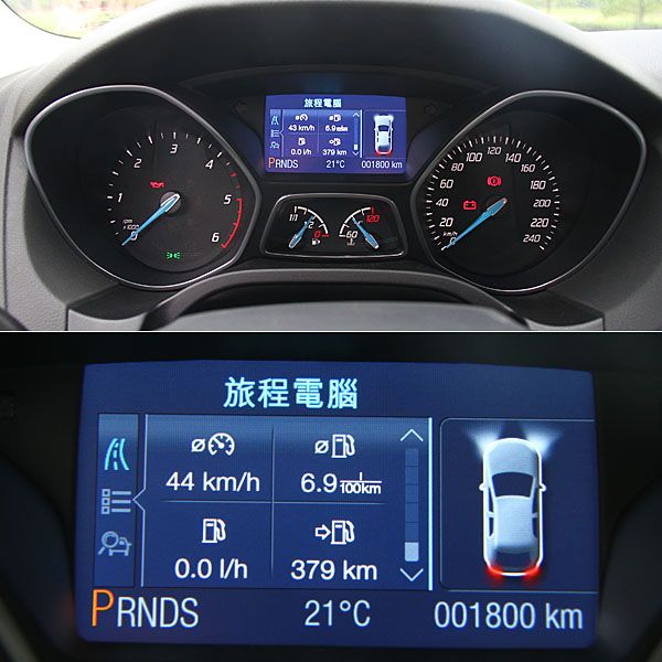 智慧型整合行車電腦提供相當豐富的行車輔助資訊,如平均油耗、剩餘里程、車外溫度、平均速度、車門未關顯示、油量不足顯示、Eco Mode資訊顯示與SYNC資訊顯示等皆會提供。