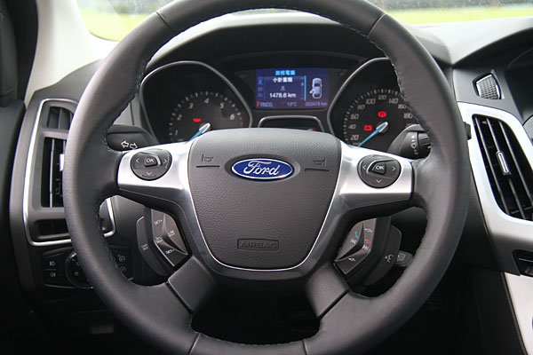 多功能方向盤,提供SYNC、語音控制、音響與定速等控制介面。