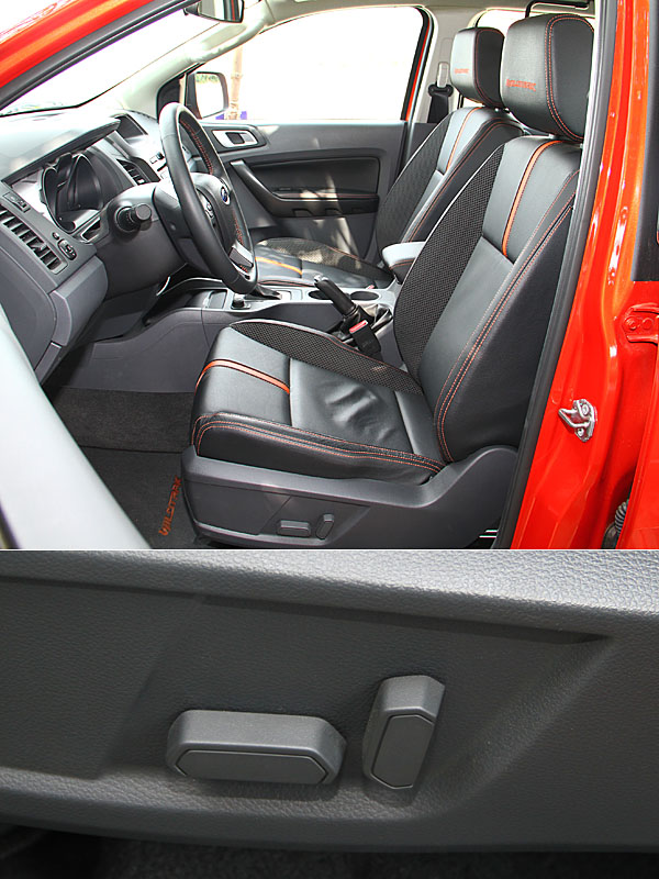 坐在Ranger Wildtrak座艙內讓你不易感受到這貨卡本色的,還有那幾乎與新世代Ford休旅車型相同的車室設計。達1850mm的車寬,但在控台的設計中,你不會感受到這龐然大物的驚人,且在新世代風格的注入下,導入與SYNC科技相似的語音聲控系統,採英語模式,或許還沒與新世代Focus的SYNC系統相同可讓你輕鬆說著中文,但以一輛貨卡車型而言,還有儀表內的數位旅程電腦、整合語音控制功能與定速系統的多功能真皮方向盤、USB與Aux-in外接音源裝置、4.2吋LCD多功能顯示幕,Ranger Wildtrak對我幾乎就是太空梭般的先進。只要你英文夠標準,電話、音響系統、空調系統等,你用說的就可以操作!