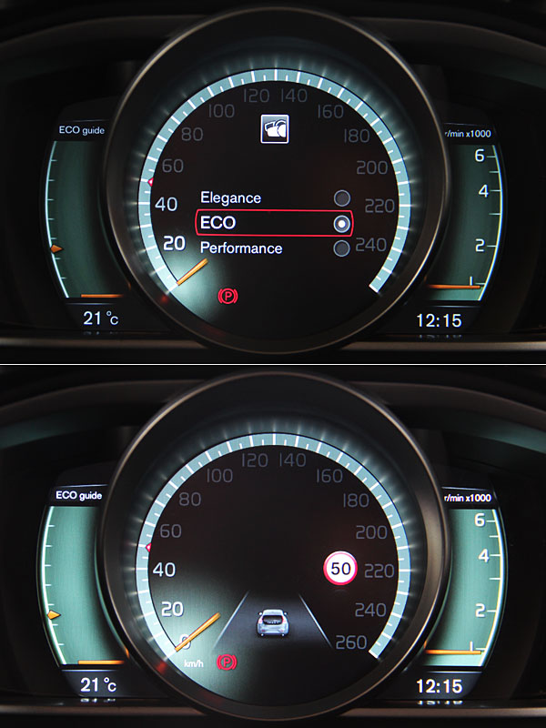 以綠色呈現的Eco模式左側改為ECO Guide此功能,也就是會針對駕駛的表現加以評分,讓駕駛可瞭解自身駕駛的節能表現如何。