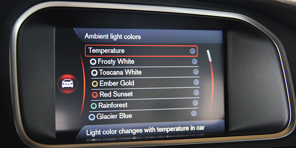 VSi資訊控制介面提供功能膝增了車內氣氛燈的都樣切換功能,還可依照溫度自行切換。