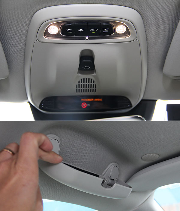 將眼鏡盒移至駕駛上方,前擋風玻璃上緣的控制總成為天窗與燈光開關。