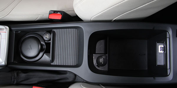 中央扶手下方的置物空間,其中中央扶手下方還提供12V電源插座與USB/iPod外接阜。