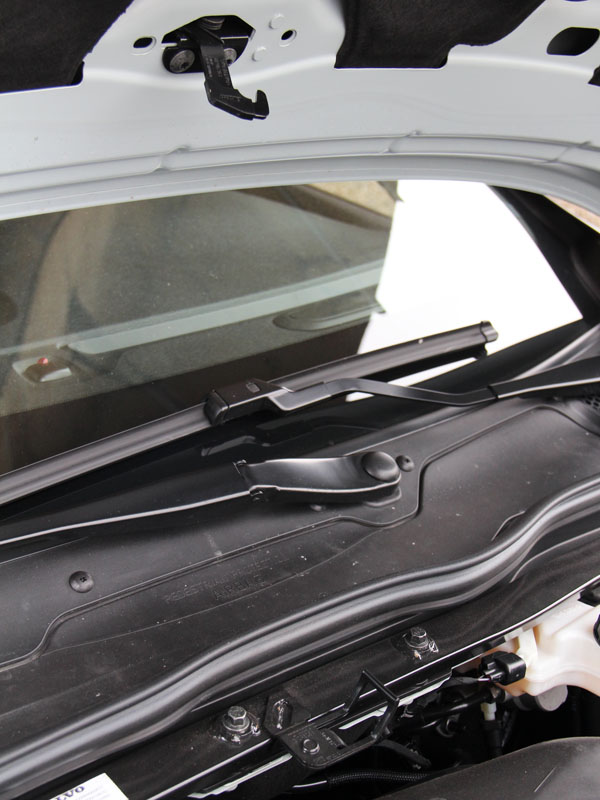 引擎蓋上明顯的立體摺痕展現動感,而引擎蓋上緣末端的三只噴水孔,無法隱藏於前擋風玻璃下端,則是因為此車型選配了行人防護氣囊,且三只的設計,也考量較為傾斜的A柱,方能給予足夠的清潔效果。