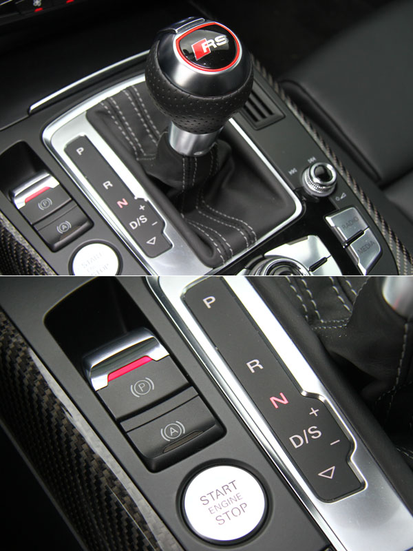 座艙內當然也很Audi,也充滿了RS味道。日耳曼民族一絲不苟的生活與造車態度,全反應在這控台的設計上,剛硬直挺的線條,整齊劃一的排列,更在黑色的襯托上,顯得如此的剛正不阿;低調的性能態勢,也於方向盤或排檔座的RS銘牌中隱約透露。不如超跑般的外張,在兼具實用的架構下,只於碳纖維飾板、跑車化座椅、跑車方向盤、排檔座及腳踏板組等處訴說自己的野性,這種曖曖內含光的性能味,也很對我的胃口。