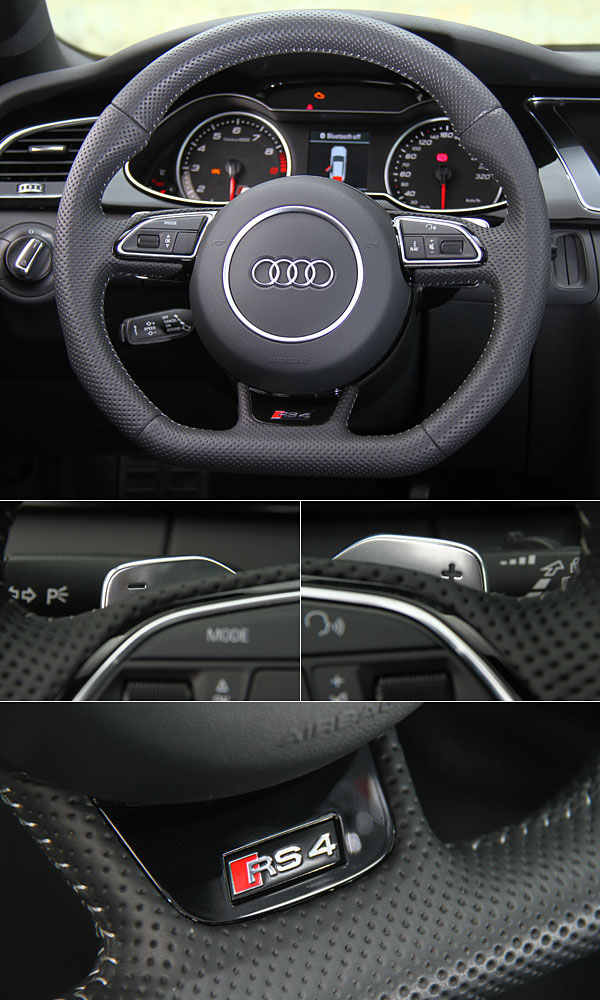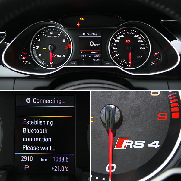雙環儀表中央安置了DIS駕駛資訊顯示系統;儀表底座當然也少不了RS4專屬字樣。