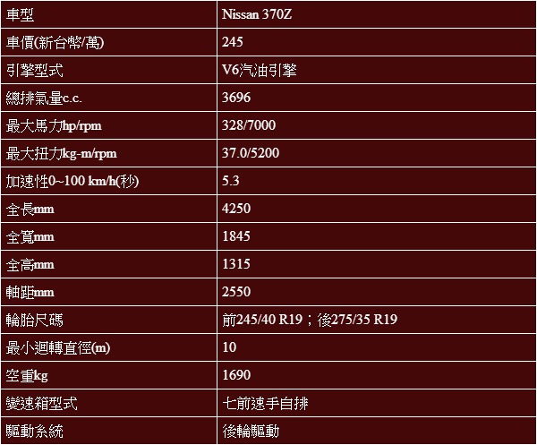 當然,370Z也不是全然沒有缺點的,像是方向盤輔助力道偏重手也不夠線性順暢就是一點,而現在245萬元的偏高售價,更是令許多人難以一親這位窈窕淑女芳澤的重要原因,其實想想這是相當可惜的部分,如此有趣的車,就因為售價已經逼近甚至超越那些德系貴族小跑車,因此沒法讓更多車迷得以盡情享用,否則若台灣也能像國外玩370Z那般淋漓盡致,不知該是多好的事情。