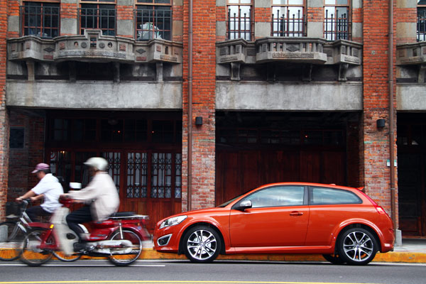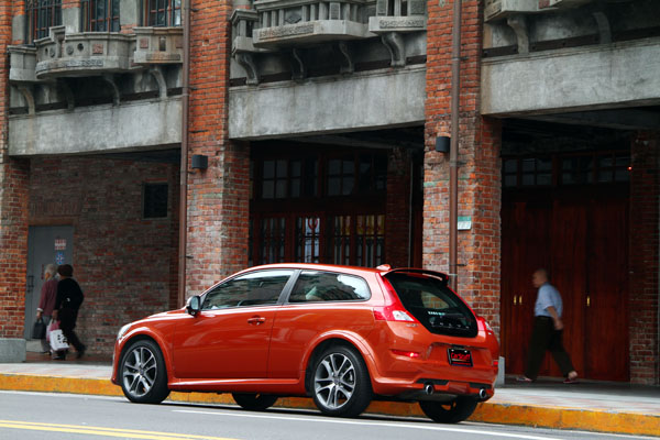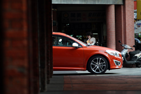 試駕當天,我們將車開到了「艋舺」取景,開著最〝潮〞的新車,在台北最古老的街道裡穿梭,就有如穿越時空般,在龍山寺前,一旁的阿伯們自顧地吃著自己的當歸豬腳,對於眼前的新玩意兒似乎沒有什麼感覺,為了找景,我們在附近繞了幾圈,再次經過他們時,他們應該會想著:這哪來的年輕人,在這裡繞不出去,那種畫面的衝突感,似乎也帶出了很多人在購車時的想法,在保守地觀念裡,這種三門車等於不方便,造型也很搞怪,但是如果告訴他們Volvo很安全,似乎又可以說服很多人,適切且非常充足的動力,也不會給人小車沒力的感覺,所以讓C30成為一個想要不乖、想要與眾不同,卻又安全、保險的選擇。