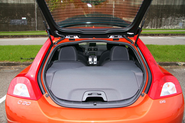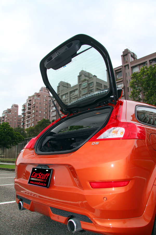 C30 D5採用獨特的上掀式玻璃尾門設計,尾部開啟的部分僅有後檔玻璃,因此使得開口的離地高度較高,放入重物時較為不便;不過仍具備完整的空間擴充機能。